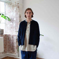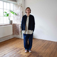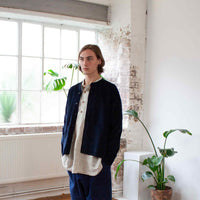 This jacket arrived in the range because Ben really wanted a collarless jacket that worked as the perfect extra winter layer, because of the cloth weight it wears as a shirt rather than a jacket.